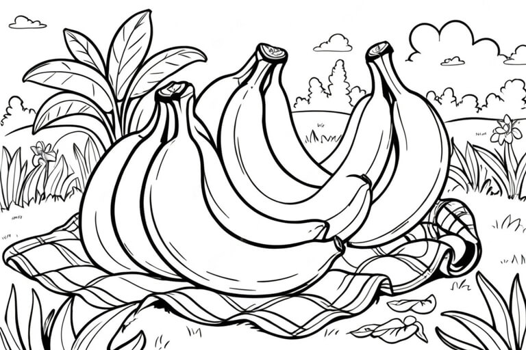 Bananen beim Picknick im Garten Ausmalbild