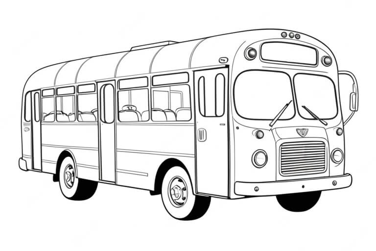 Eine klare Seitenansicht des Busses – perfekt, um Türen, Räder und Fenster sauber auszumalen.