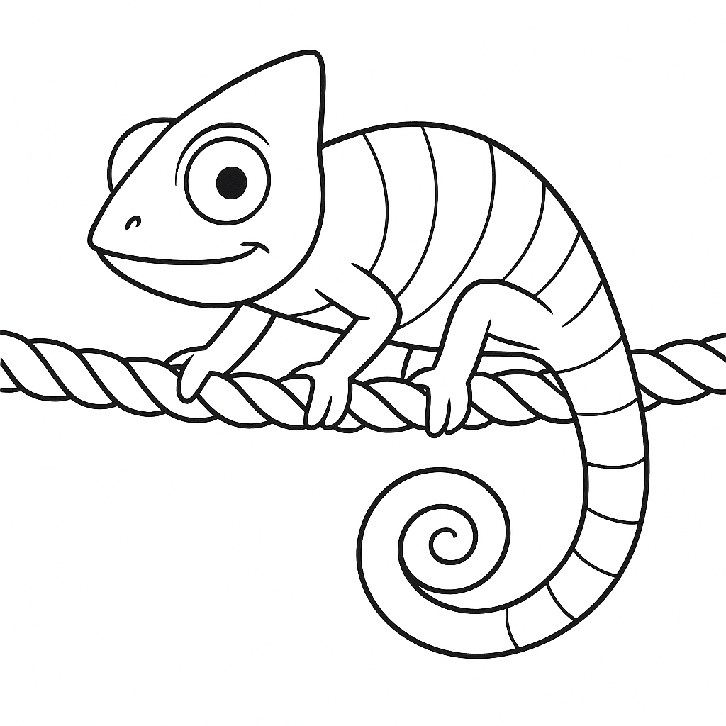 Ein mutiges Chamäleon, das ein Seil überquert – ideal für lebendige Farben und Spaß beim Malen!