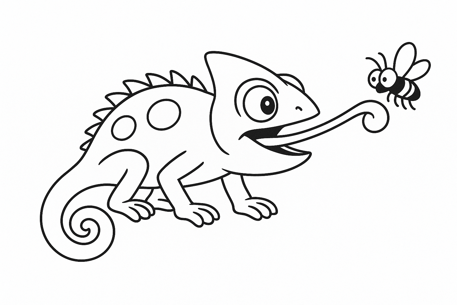 Die Zunge des Chamäleons ist länger als sein Körper! Male diese dynamische Szene mit kräftigen Farben.