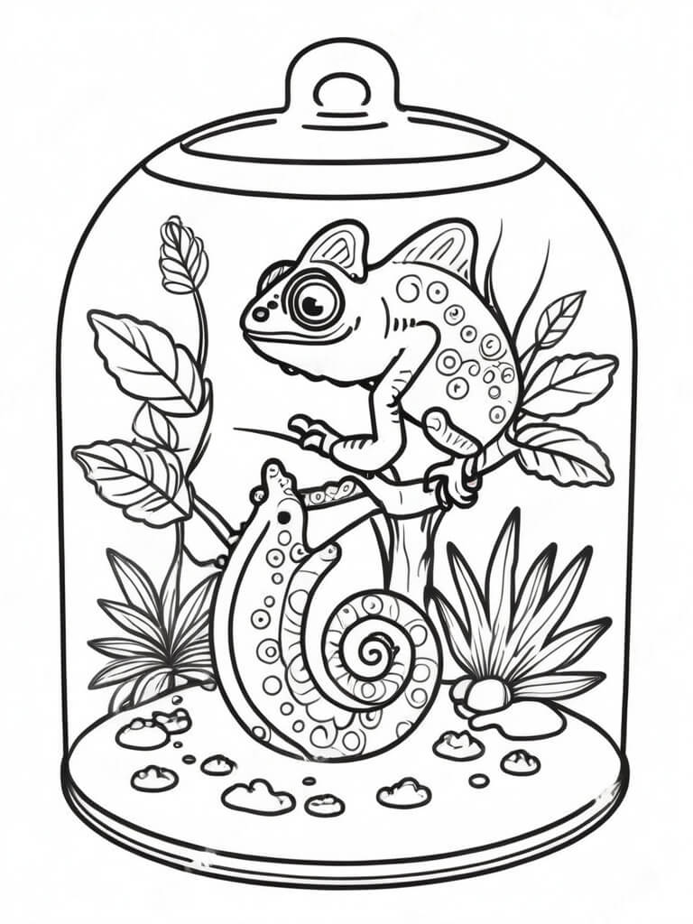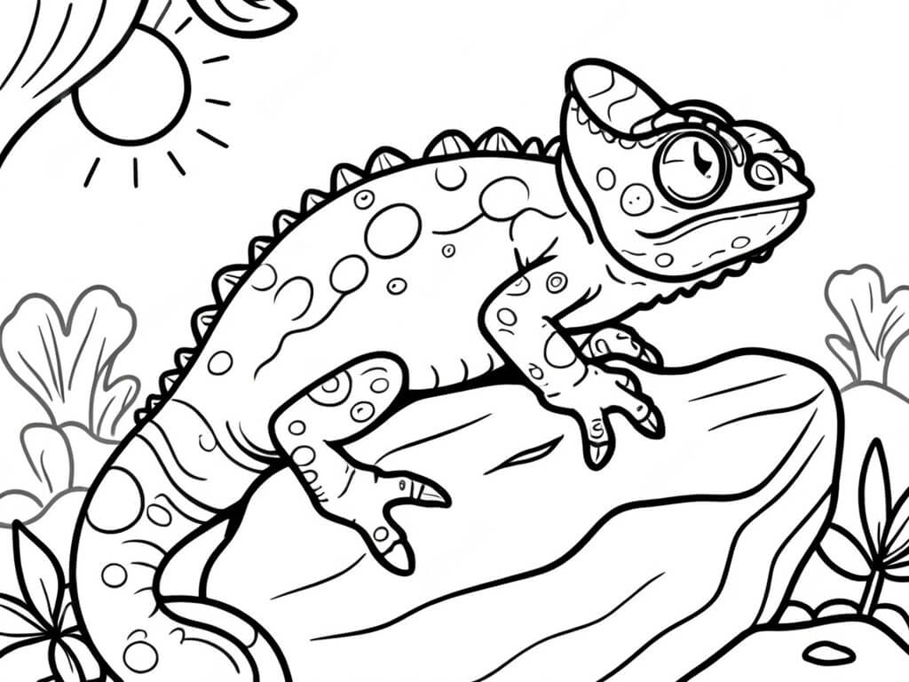 Ein neugieriges Chamäleon mit großen Augen – male den Hintergrund bunt und lebendig!