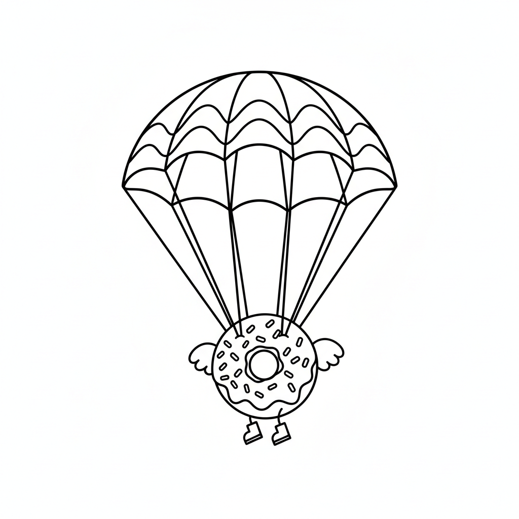 Donut mit Fallschirm Ausmalbild