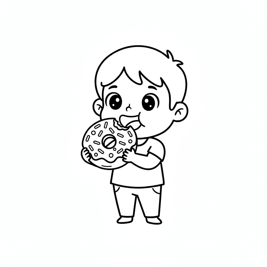 Kind isst Donut Ausmalbild