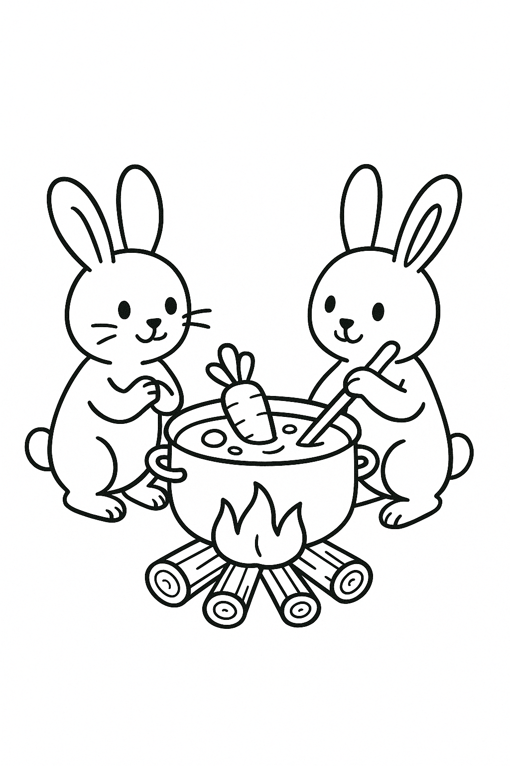 Lagerfeuer mit Kaninchen – Ausmalbild
