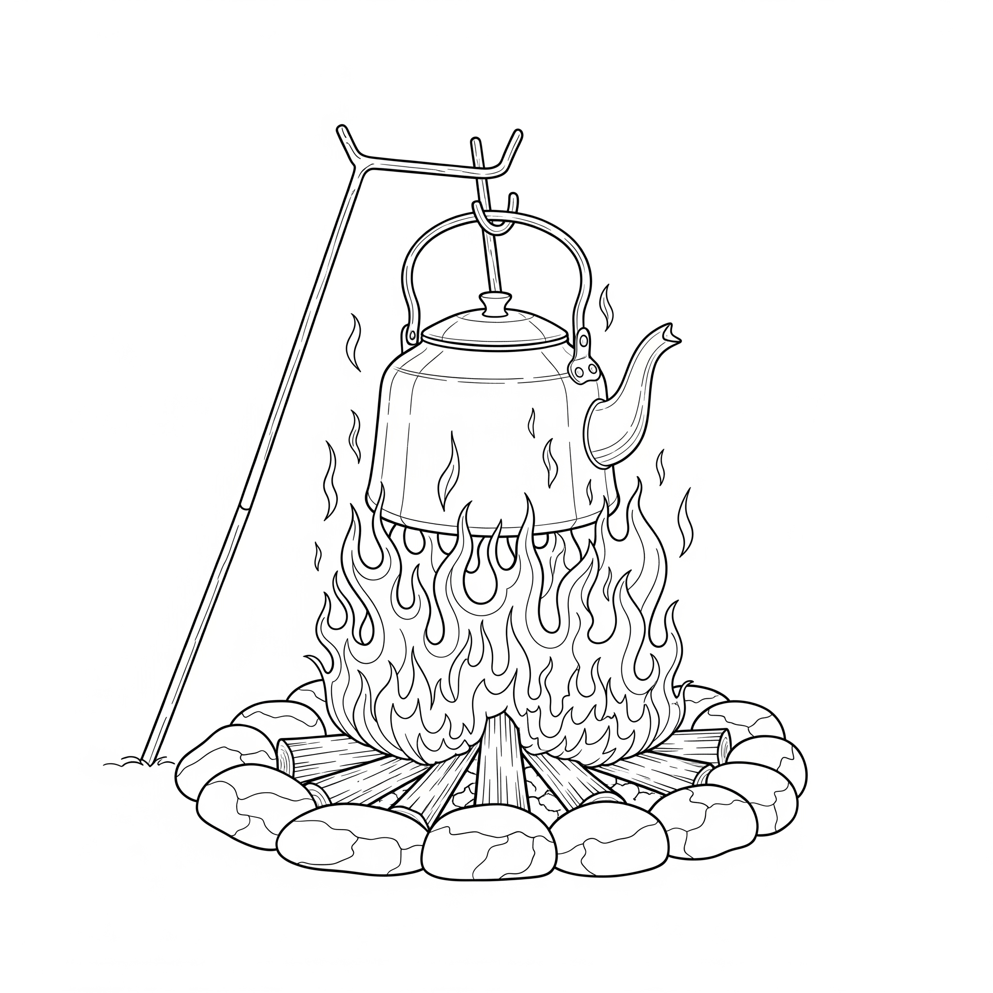 Lagerfeuer mit Kessel – Ausmalbild