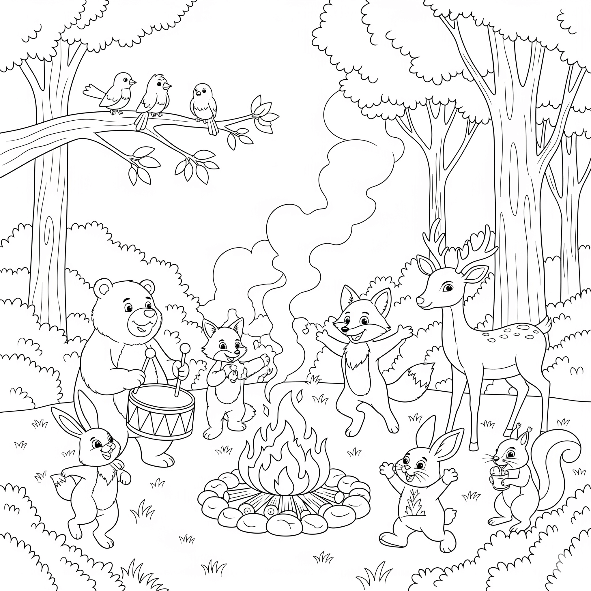 Lagerfeuer-Party – Ausmalbild
