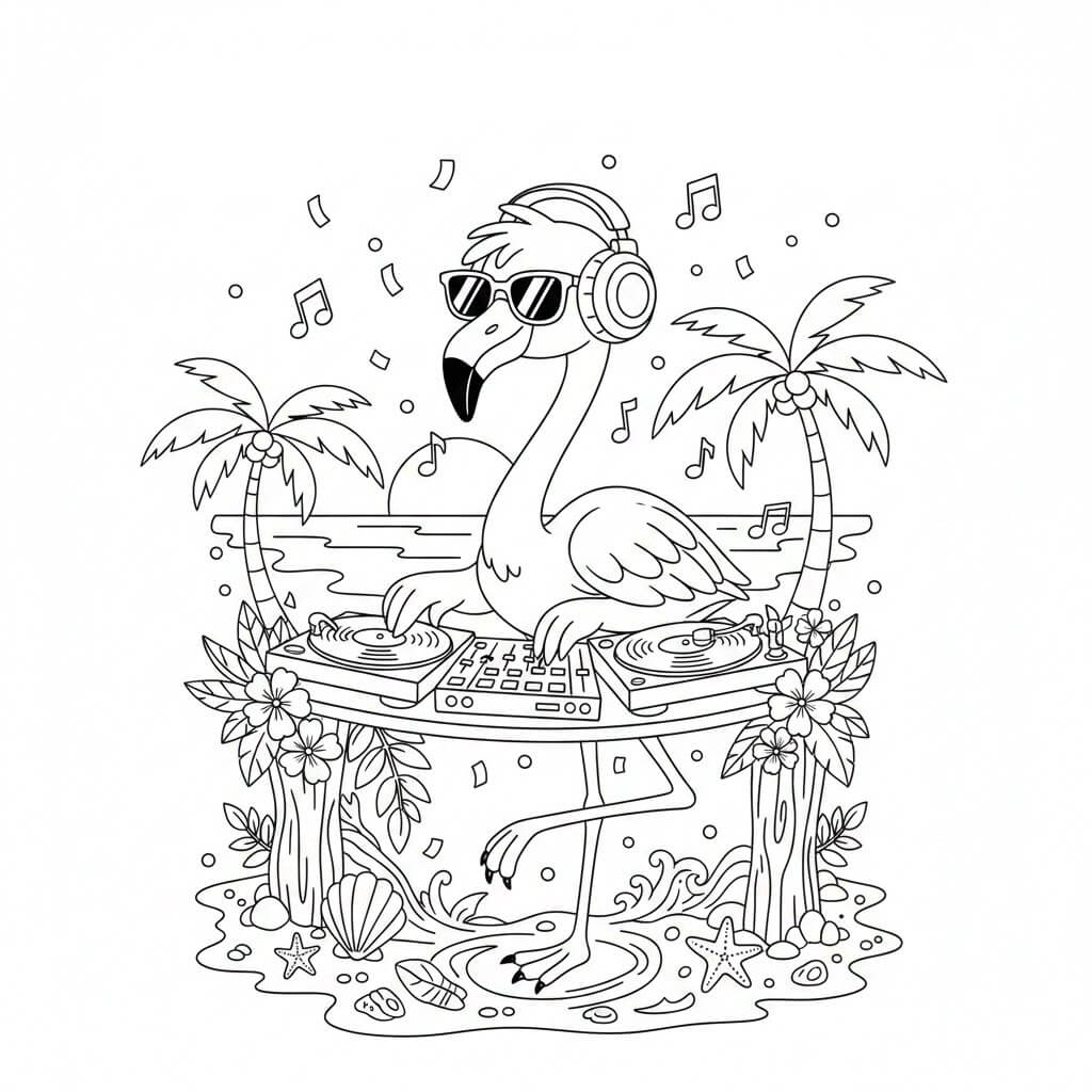DJ-Flamingo Ausmalbild