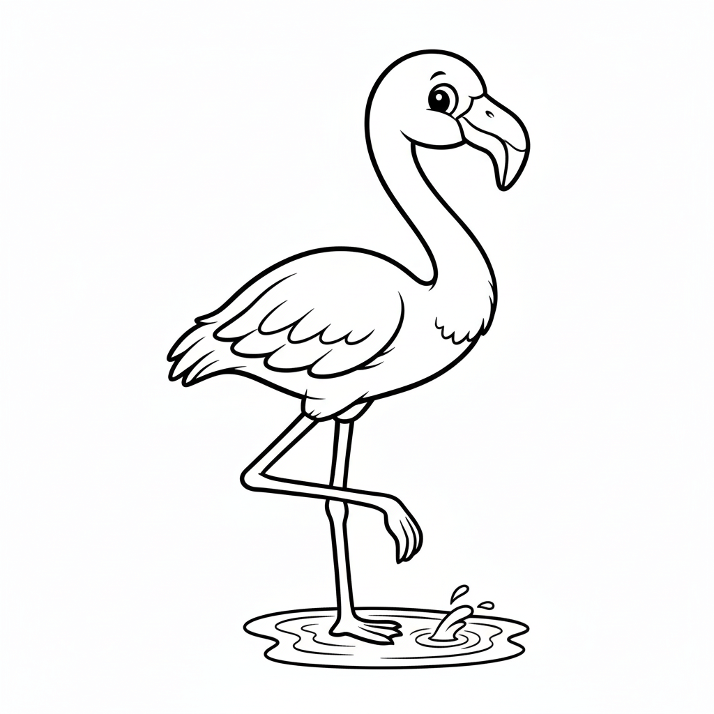 Ein Flamingo im Cartoon-Stil – ideal für kleinere Kinder und einfache Ausmalflächen.