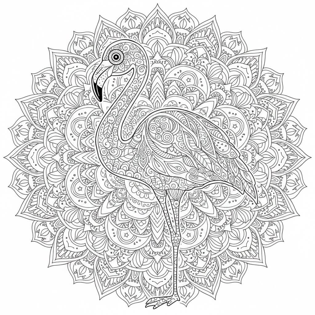 Ein Flamingo als Mandala – perfekt zum Entspannen und für alle, die gerne Details ausmalen.