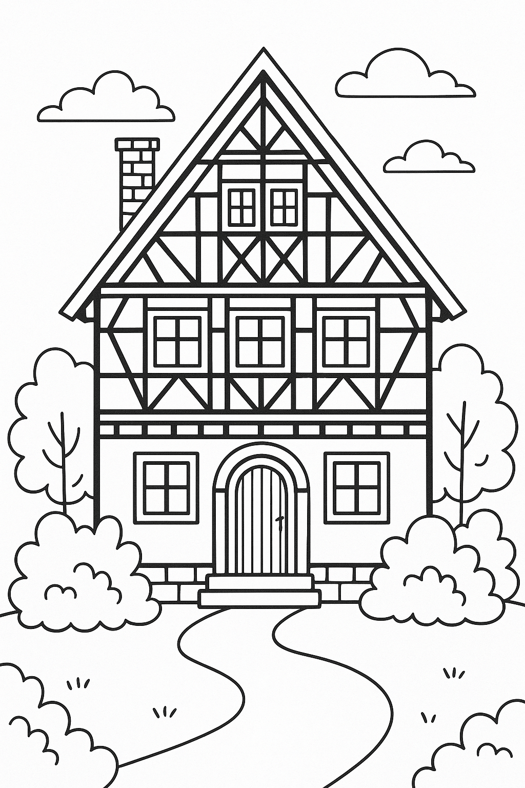 Willkommen in der Welt der Häuser! Hier findest du eine wunderschöne Sammlung von Haus Ausmalbildern – von einfachen Häusern über Baumhäuser bis zu Häusern im Wald, am See oder in den Bergen. Lade deine Lieblingsbilder herunter, drucke sie aus und hab viel Spaß beim Ausmalen!