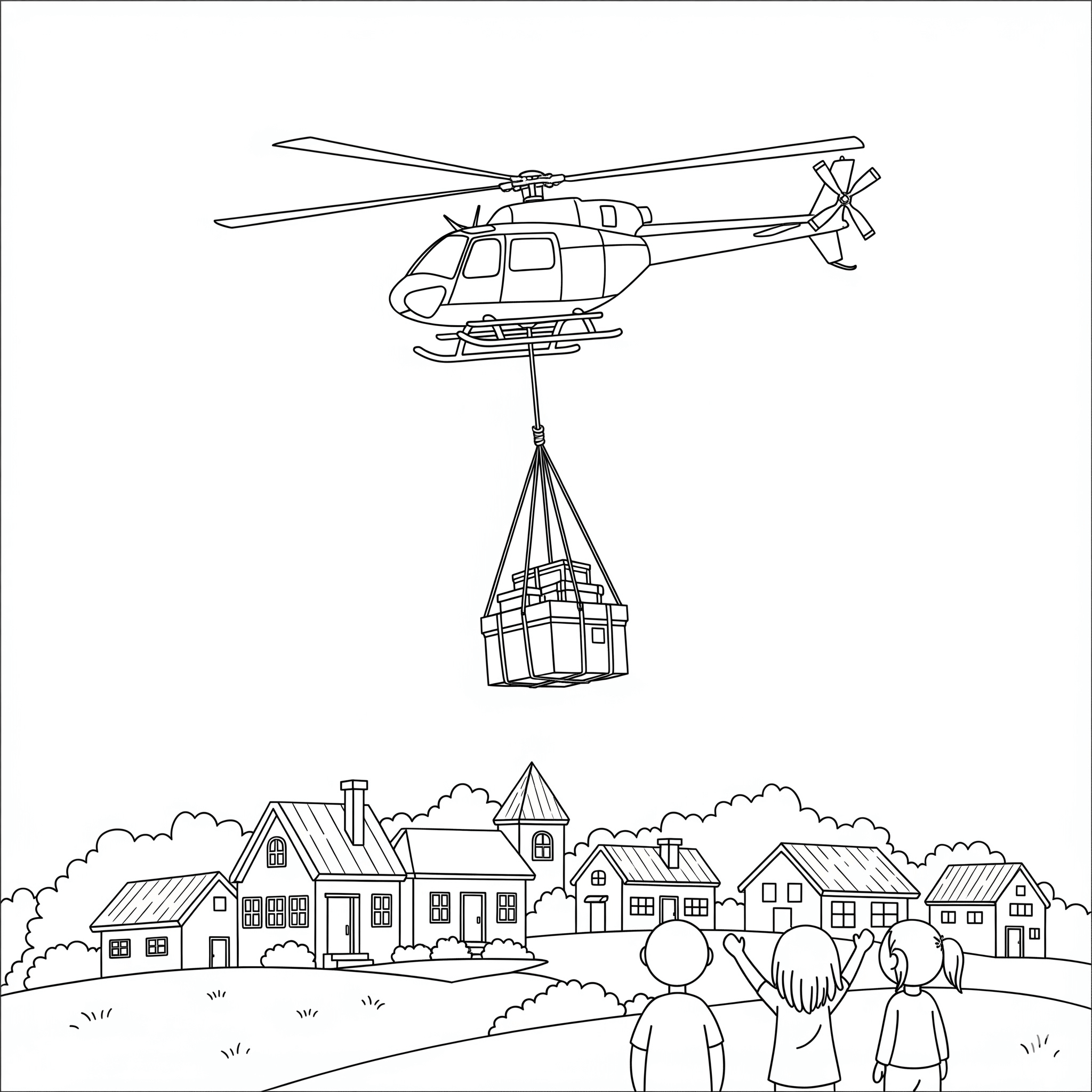 Hubschrauber liefert Vorräte – Ausmalbild