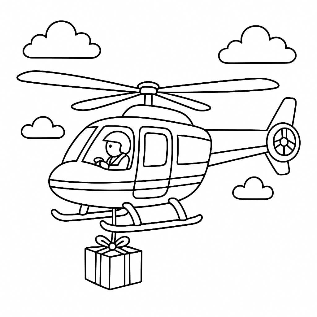 Hubschrauber mit Geschenk – Ausmalbild