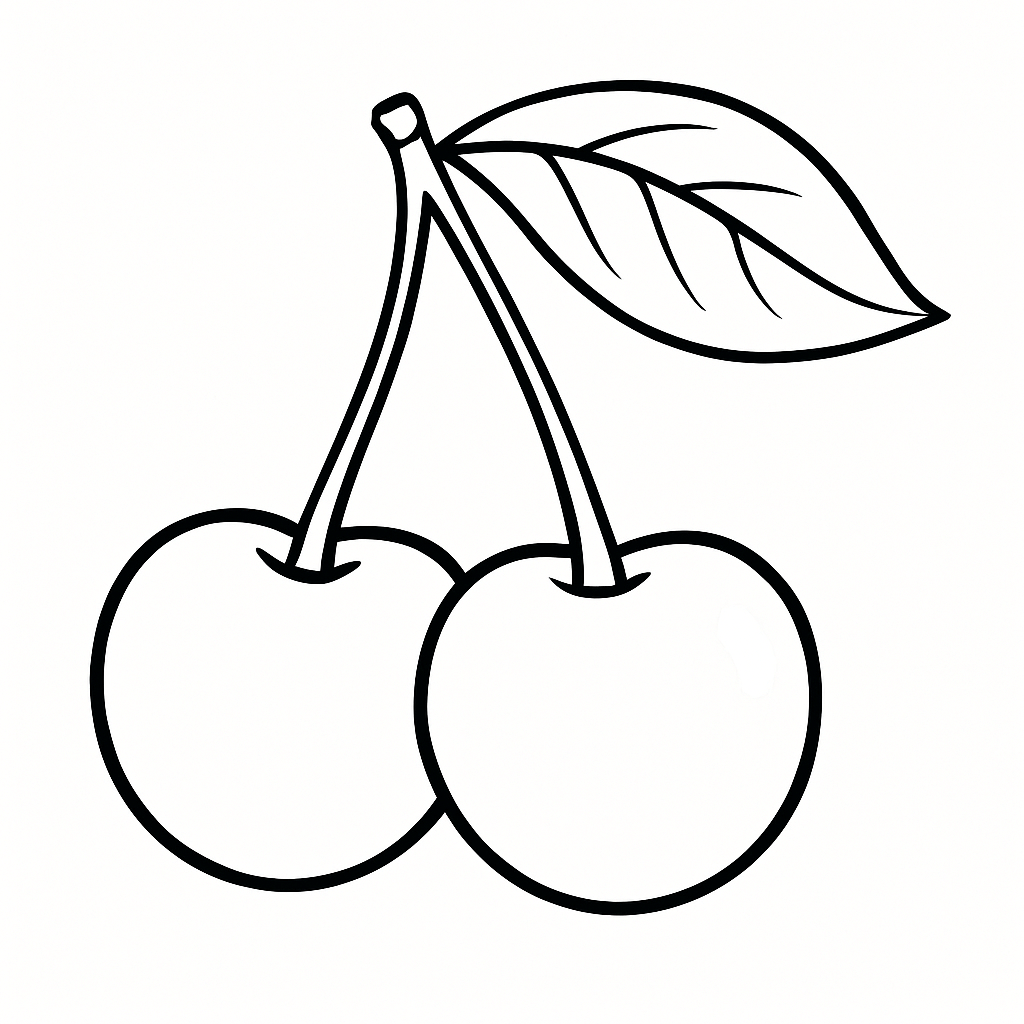 Zwei klassische Kirschen mit Stiel – ein traditionelles Motiv, das leicht auszumalen ist.