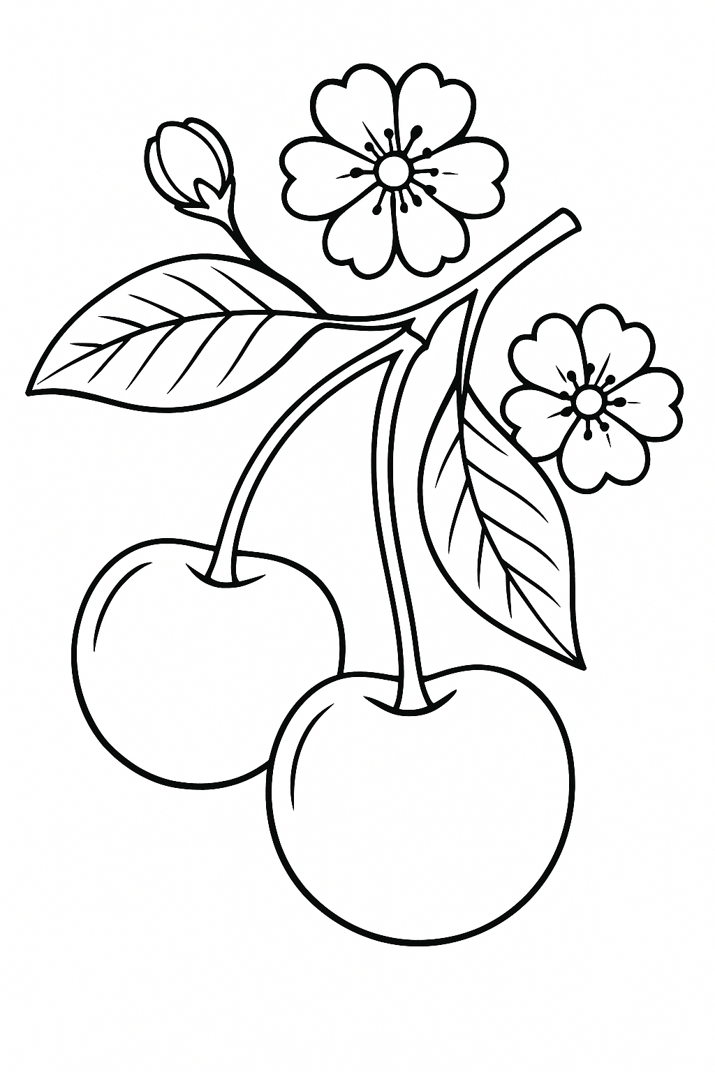 Kirschen mit zarten Blumen – ein schönes Motiv für detailverliebtes Ausmalen.