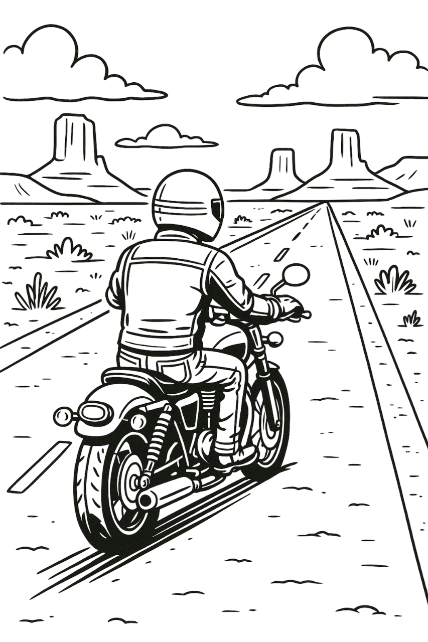 Für alle, die zwei Räder lieben! In dieser Sammlung findest du klassische Maschinen, legendäre Marken, Offroad-Szenen, Brücken, Wüste und sogar ein Raketen-Motorrad. Drucke aus, schnapp dir deine Stifte und gib Vollgas in Farbe!