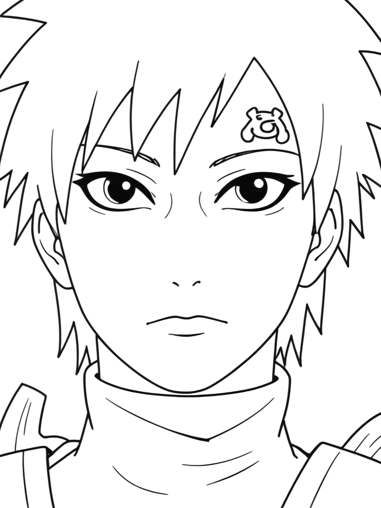 Gaara mit ernstem Blick und seinem typischen Tattoo auf der Stirn – perfekt für Fans des Wüstenninja.