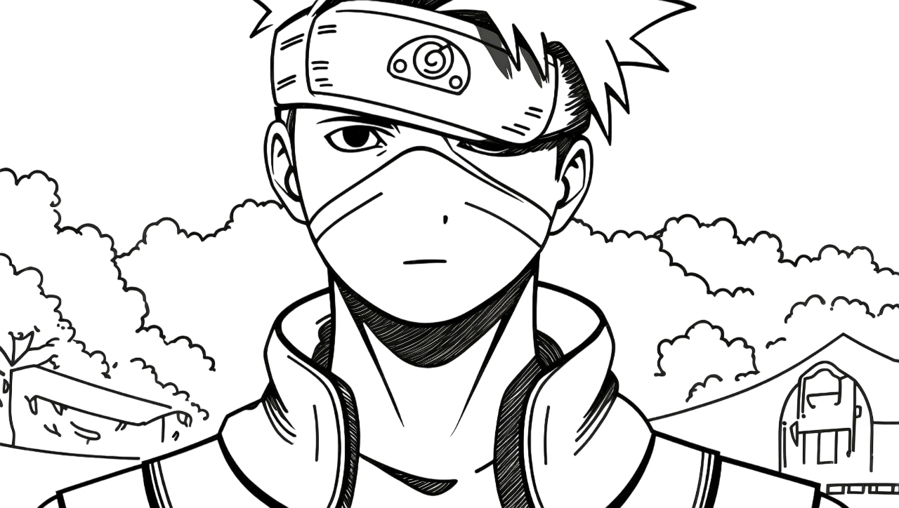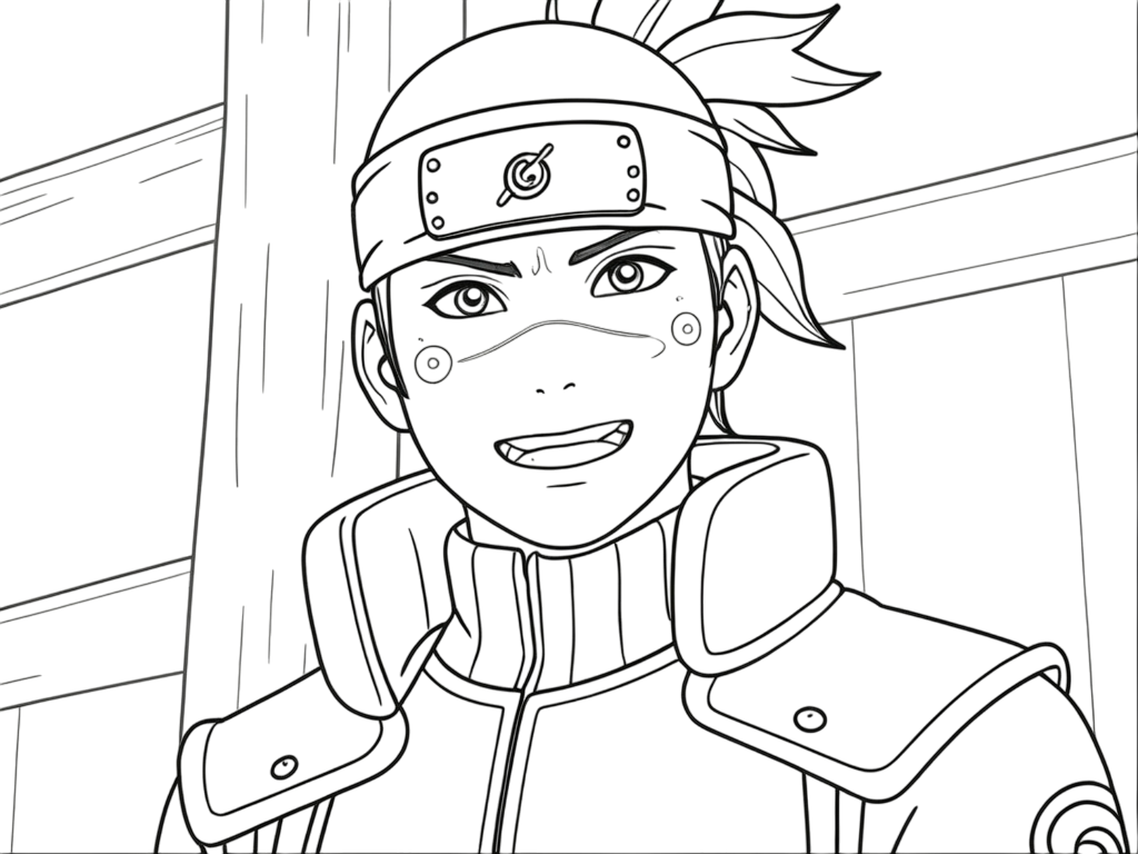Iruka Sensei, einer der ersten Lehrer von Naruto, mit freundlichem Ausdruck – ein ruhiges Motiv zum Ausmalen.