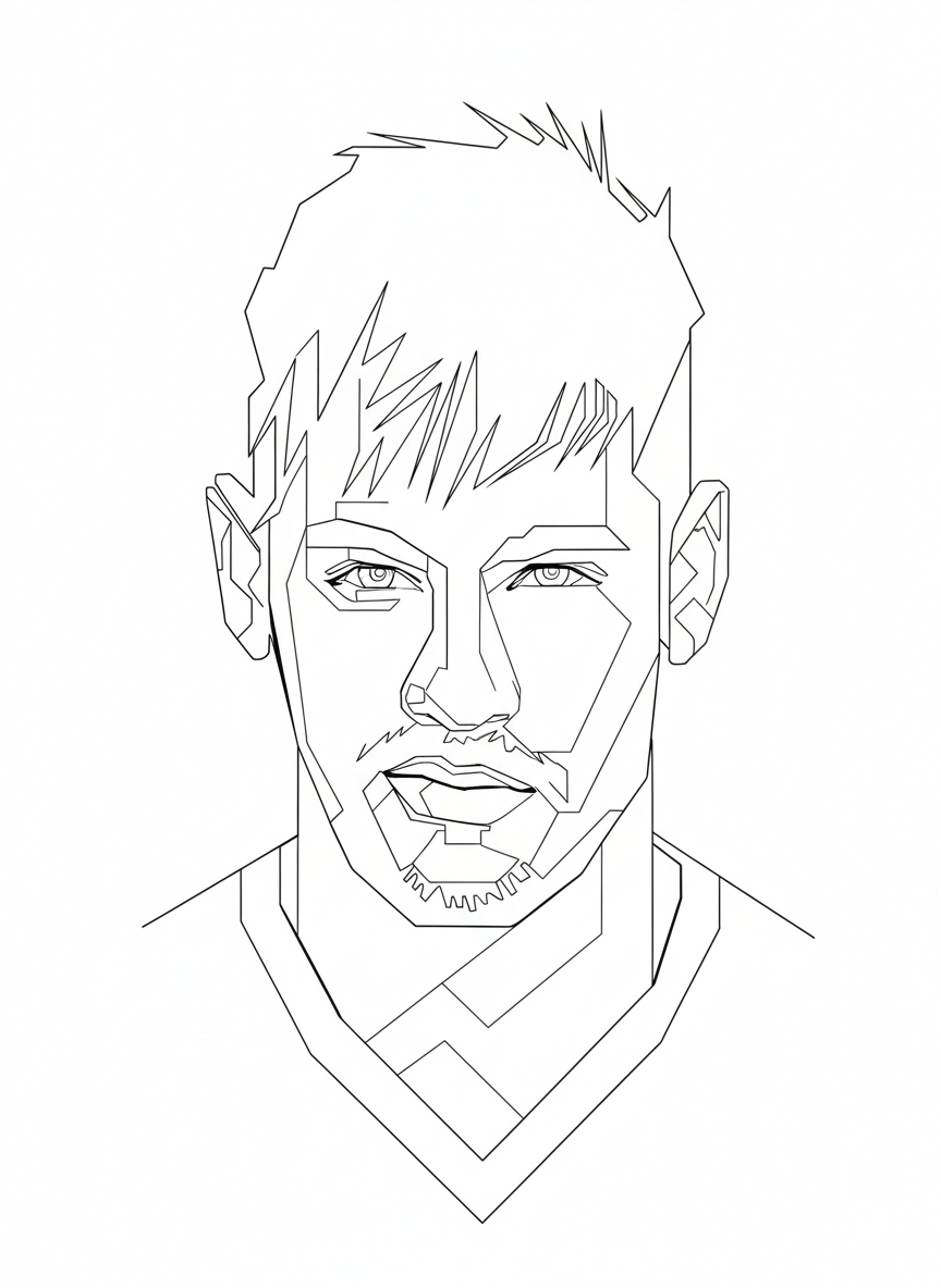 Ein detailliertes Porträt von Neymar – ideal zum Üben von Schattierungen und Gesichtsausdrücken.