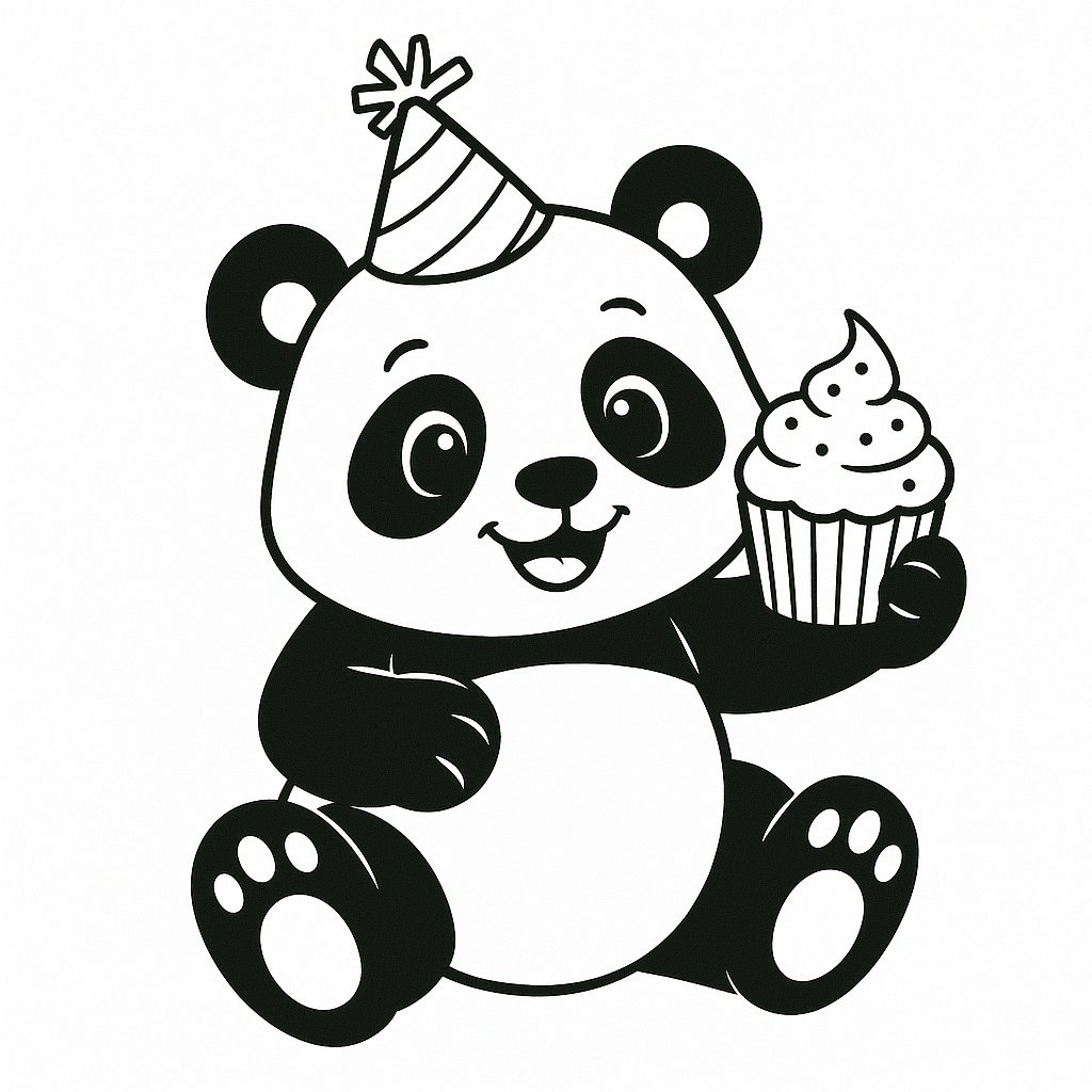 Dieser Panda hält einen leckeren Cupcake in den Pfoten – ideal, um Pastellfarben und bunte Zuckerglasuren auszuprobieren.