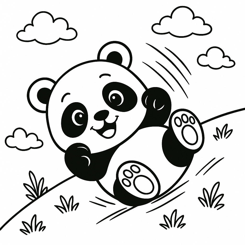 Panda rollt über das Gras Ausmalbild