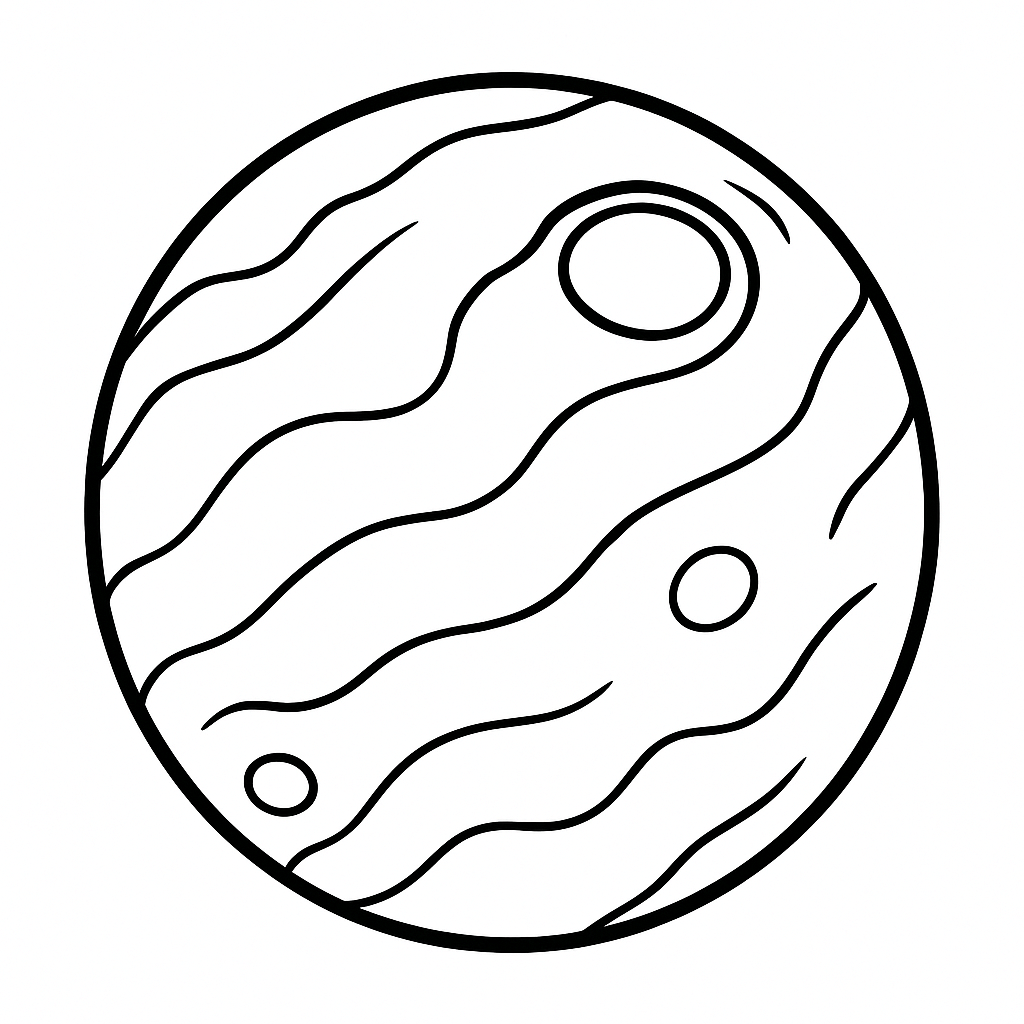 Der sonnennächste Planet als Ausmalbild – klein, felsig und voller Details für kleine Entdecker.