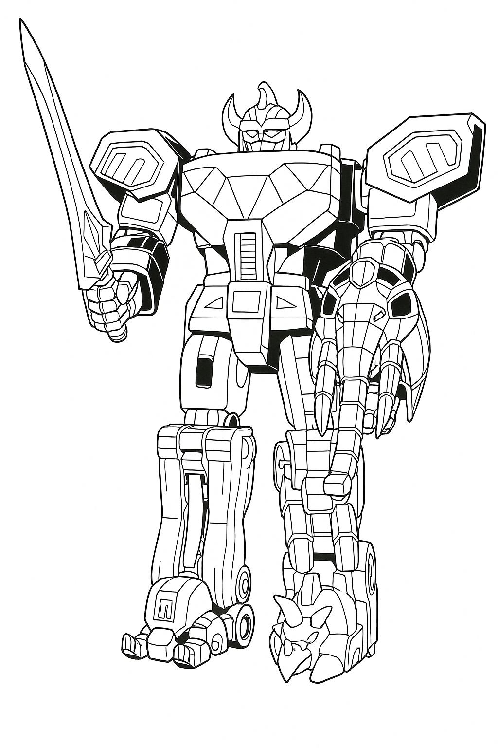 Ein mächtiger Megazord in Action – ideal, wenn du eine dynamische Kampfpose ausmalen möchtest.