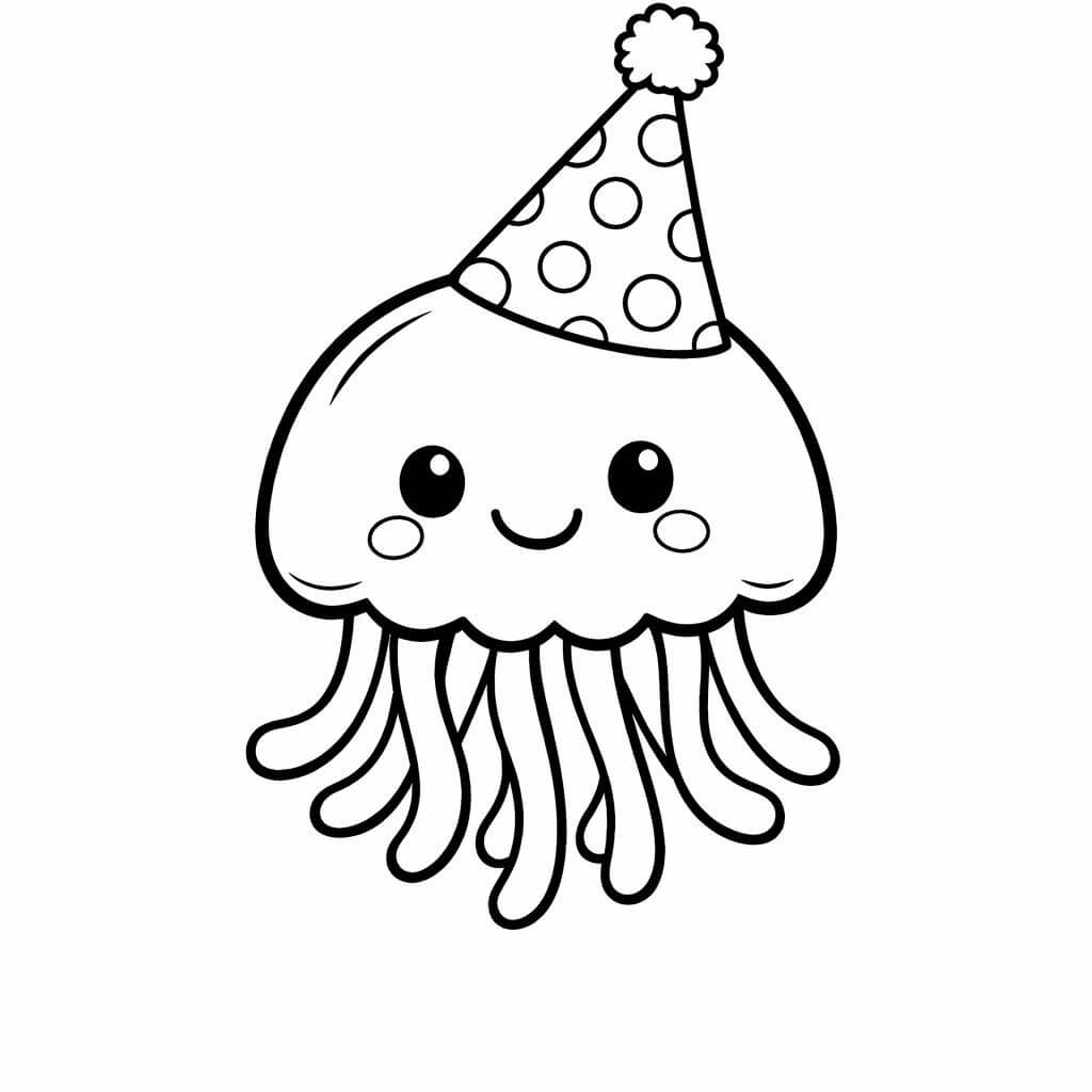 Eine lustige Qualle mit Partyhut – ideal für Kinder.