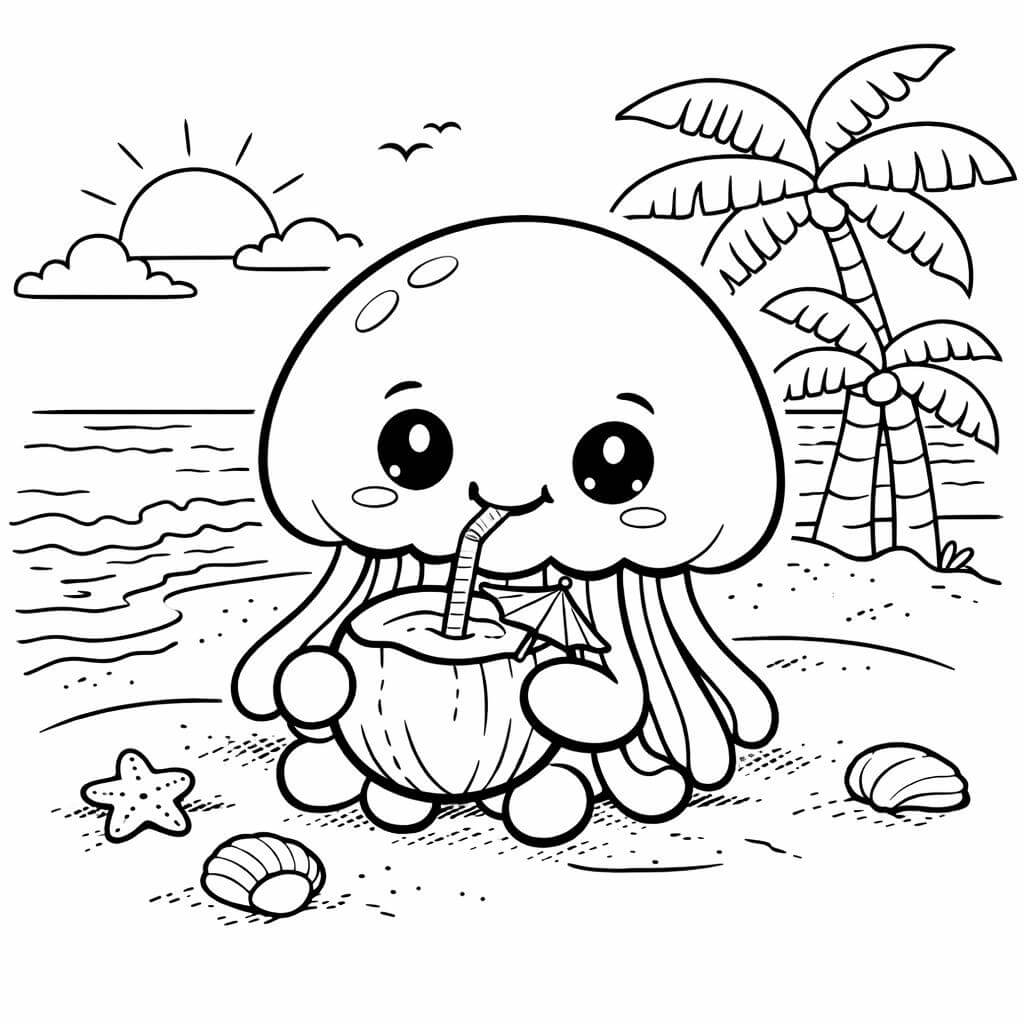 Eine entspannte Qualle, die Kokoswasser trinkt.
