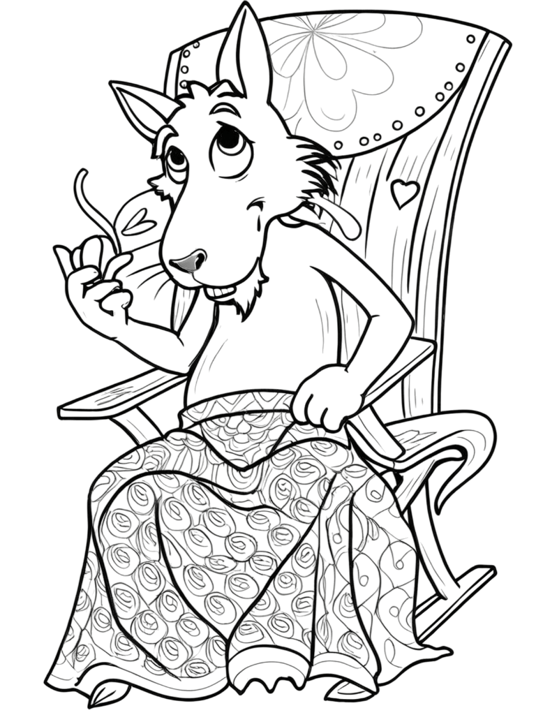 Der Wolf verkleidet sich und sitzt auf einem Stuhl – eine spannende Szene.