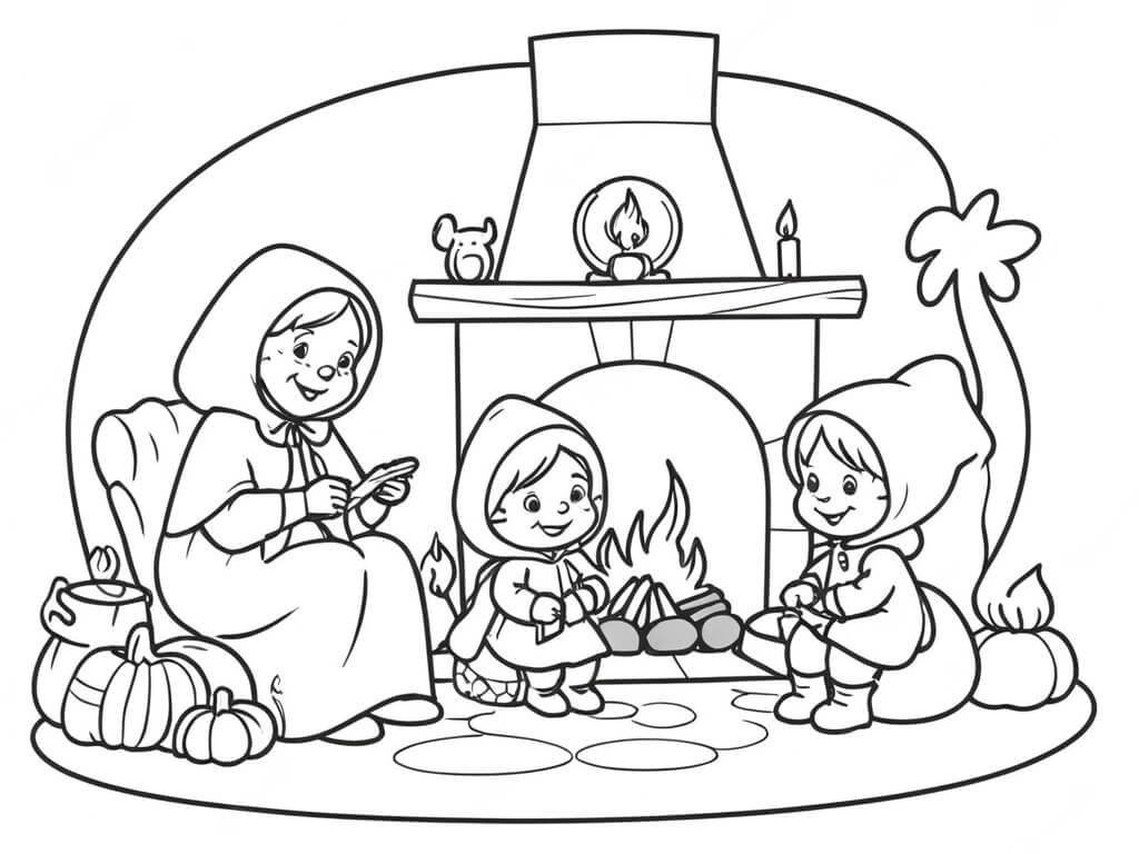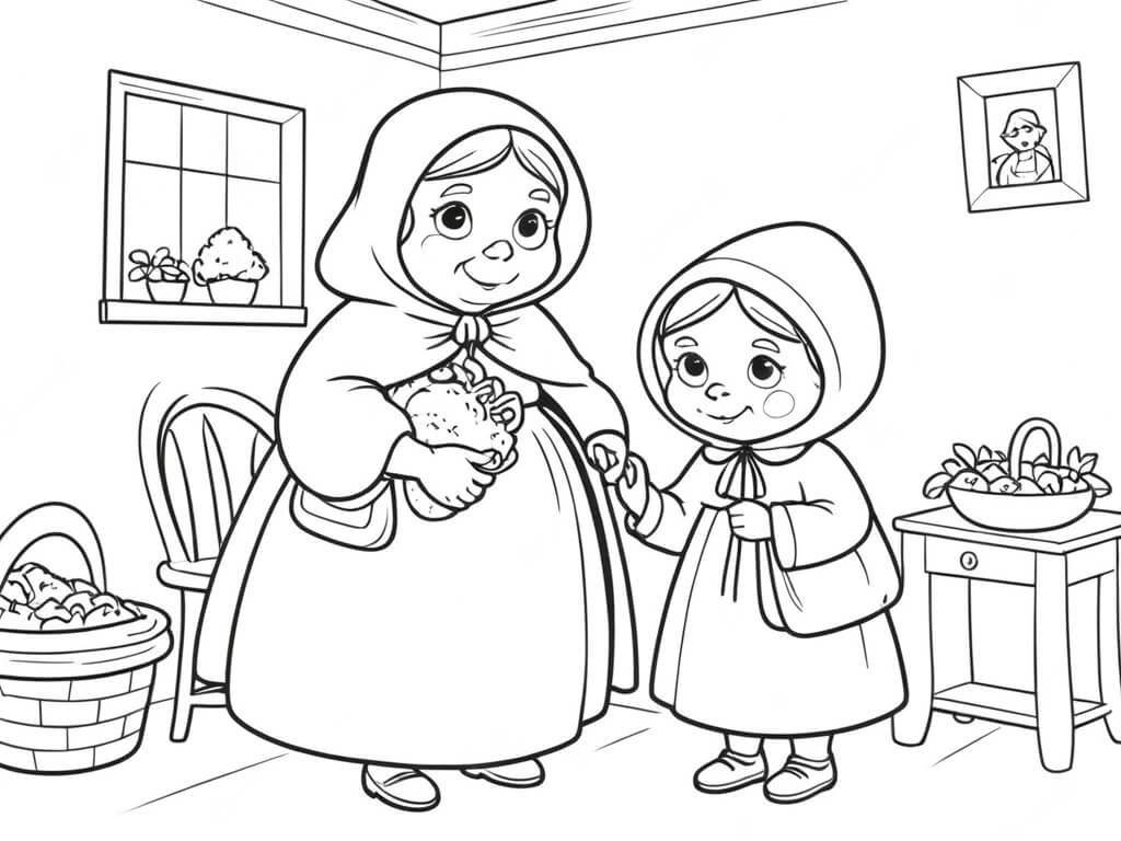 Großmutter, Jäger und Rotkäppchen Ausmalbild
