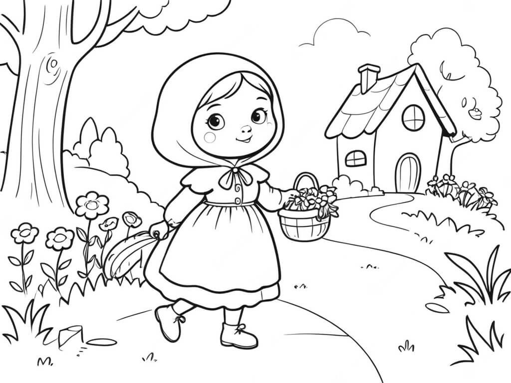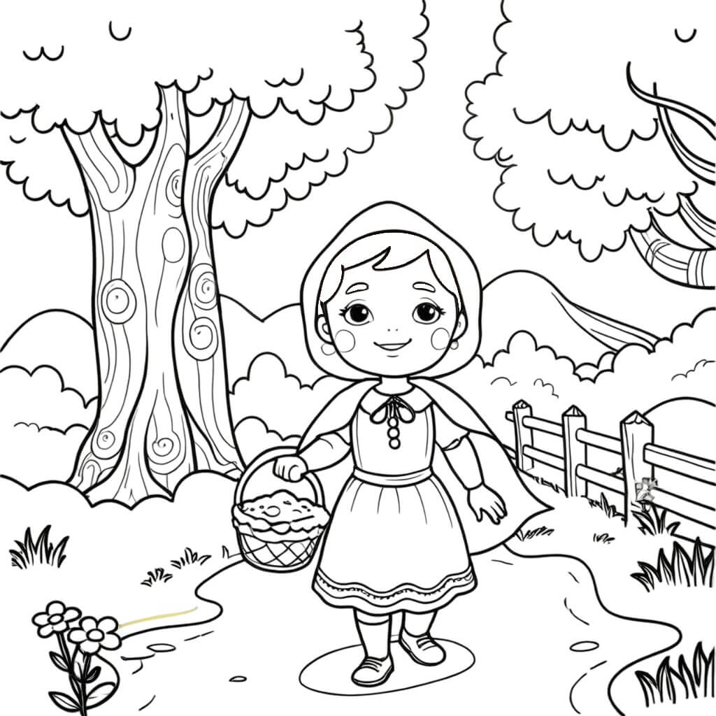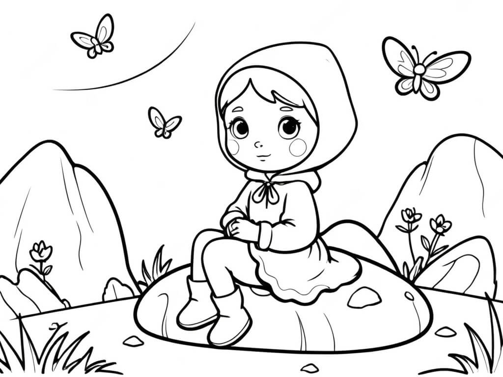 Rotkäppchen mit Schmetterlingen Ausmalbild
