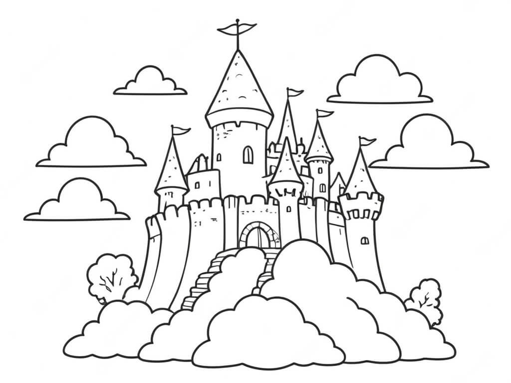 Schloss auf Wolken Ausmalbild