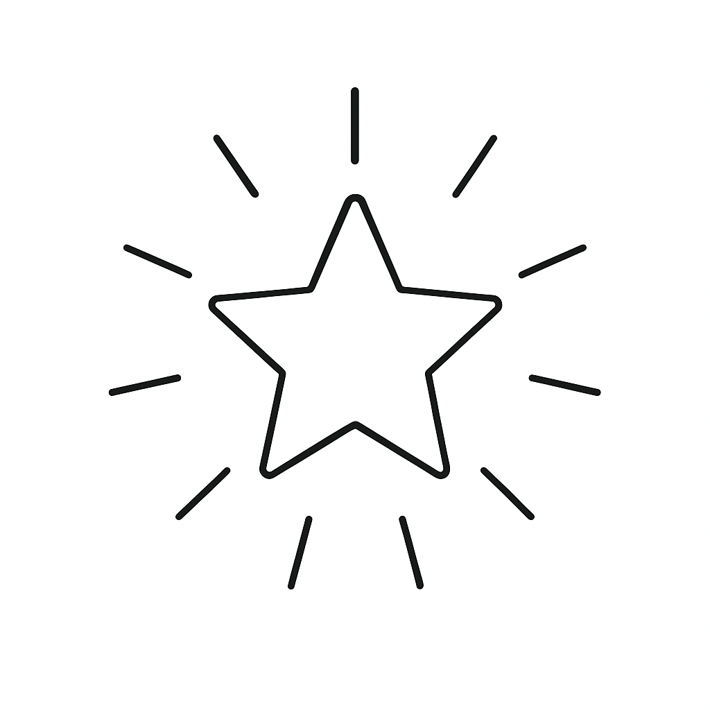 Ein hell strahlender Stern – perfekt, um ihn in Gelb, Gold oder mit funkelnden Effekten auszumalen.