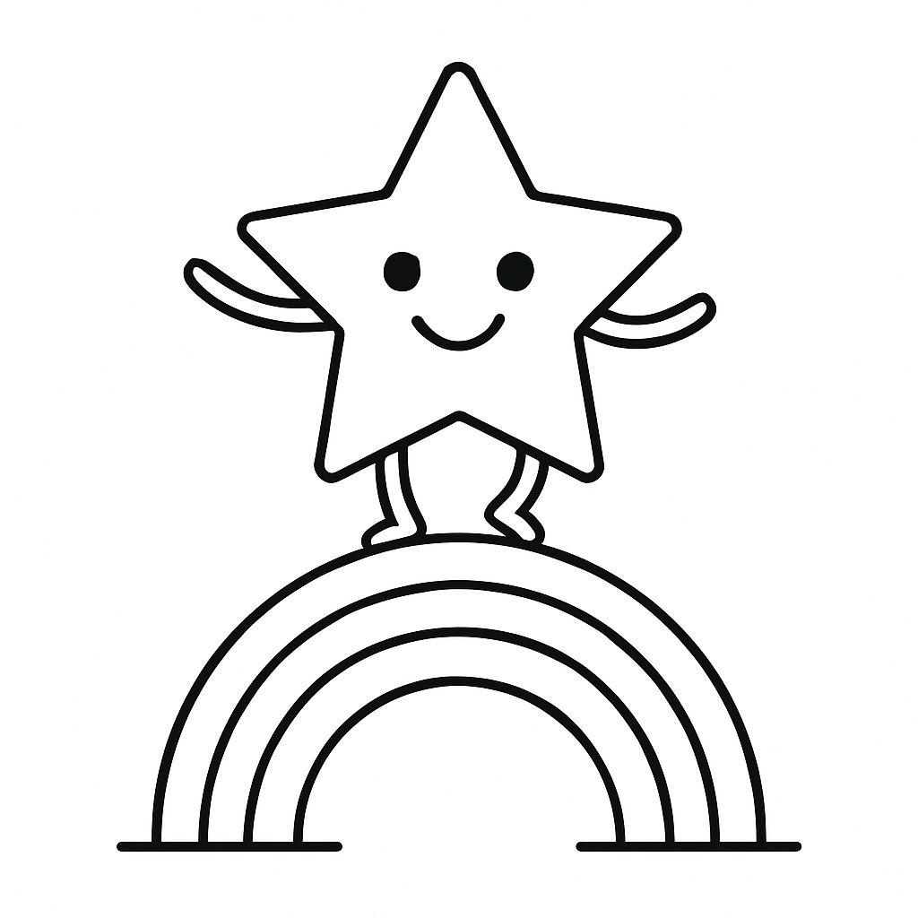 Ein Stern, der auf einem bunten Regenbogen sitzt. Ideal, um viele verschiedene Farben zu kombinieren.