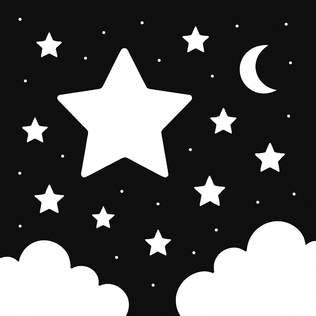 Ein kleiner Baby-Stern, der friedlich auf einer weichen Wolke schläft. Ideal für zarte Pastellfarben und sanfte Nachtstimmungen.