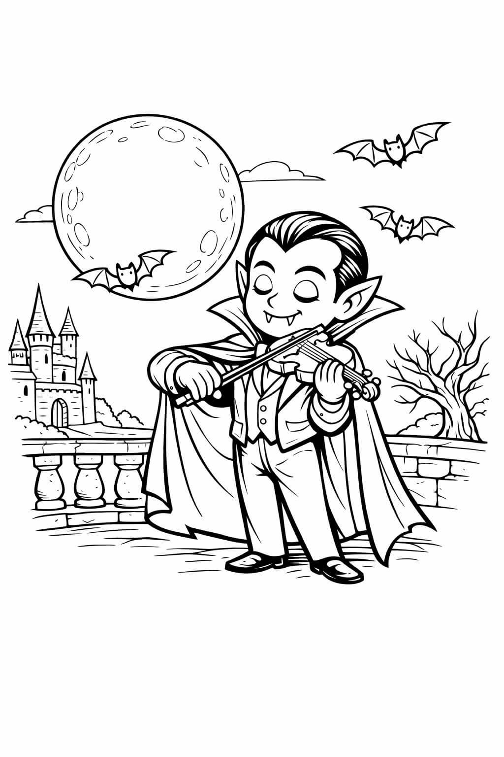 Eleganter Vampir-Graf im Schloss Ausmalbild
