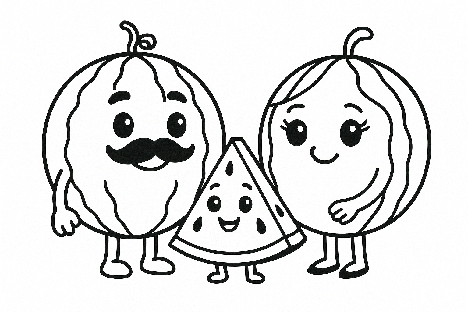 Die Wassermelone ist frisch, süß und perfekt für sommerliche Malabenteuer! Hier findest du wunderschöne Wassermelonen-Ausmalbilder – von Familienmelonen bis hin zu Gitarre spielenden und Piratenmelonen. Ideal für Kinder und kreative Köpfe!