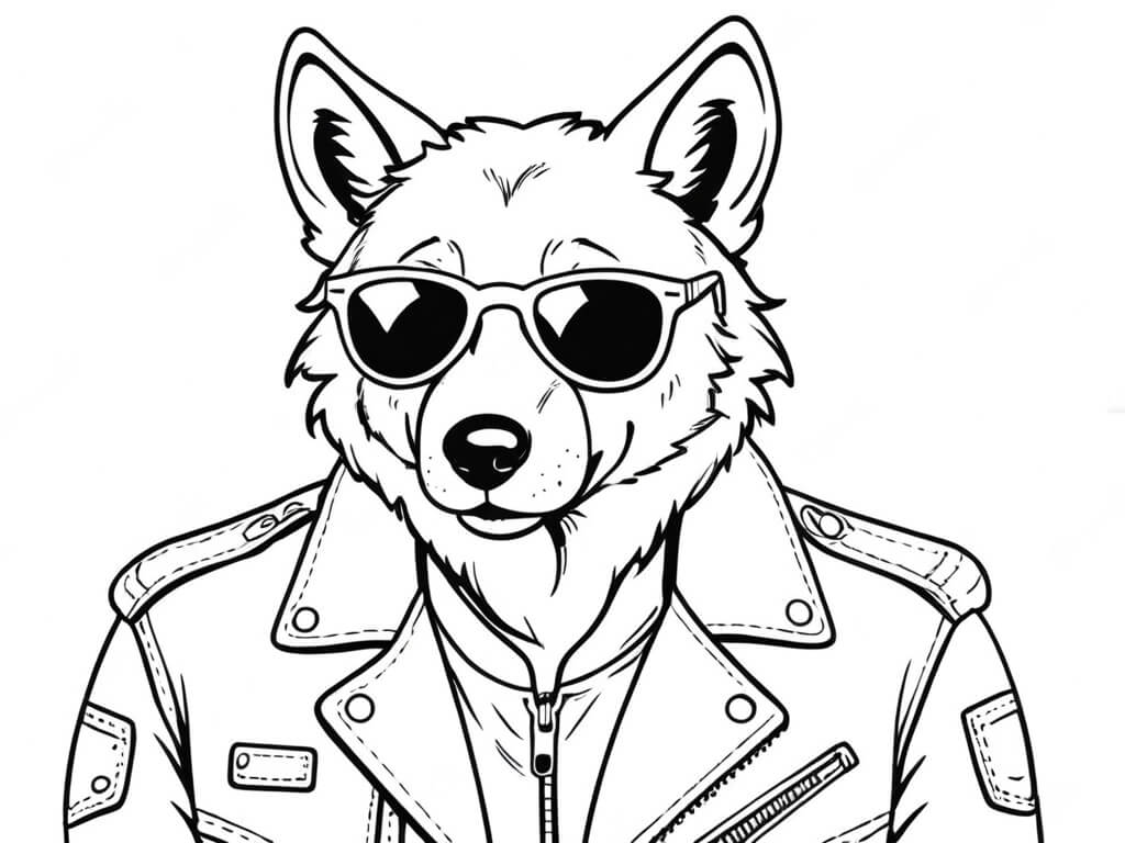 Cooler Stil – ein Wolf mit Lederjacke für rockige Farbkombinationen.