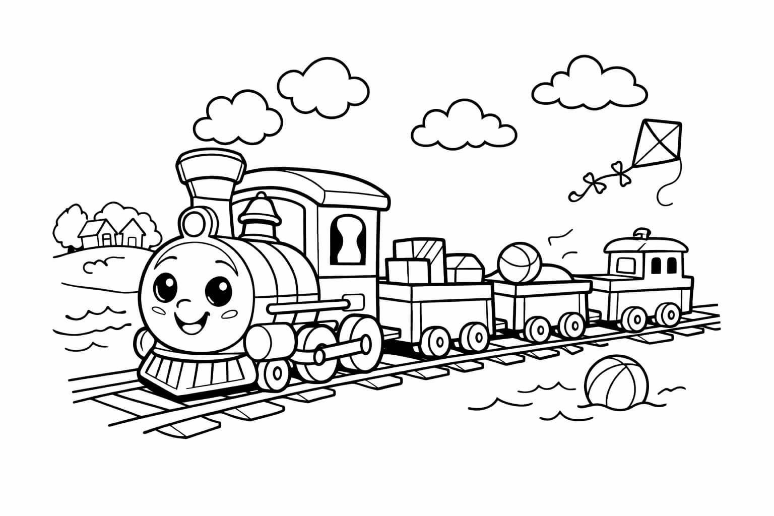 Lächelnder Kinderzug Ausmalbild